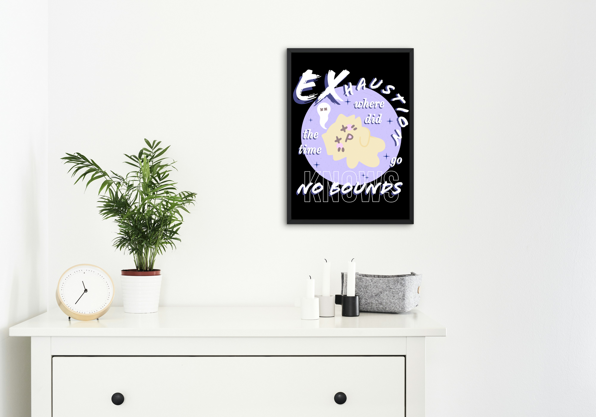 Time flies, but don't let it exhaust you! Our poster features a playful reminder to take breaks because exhaustion knows no bounds. Stay fresh and alive with our Exhaustion poster.