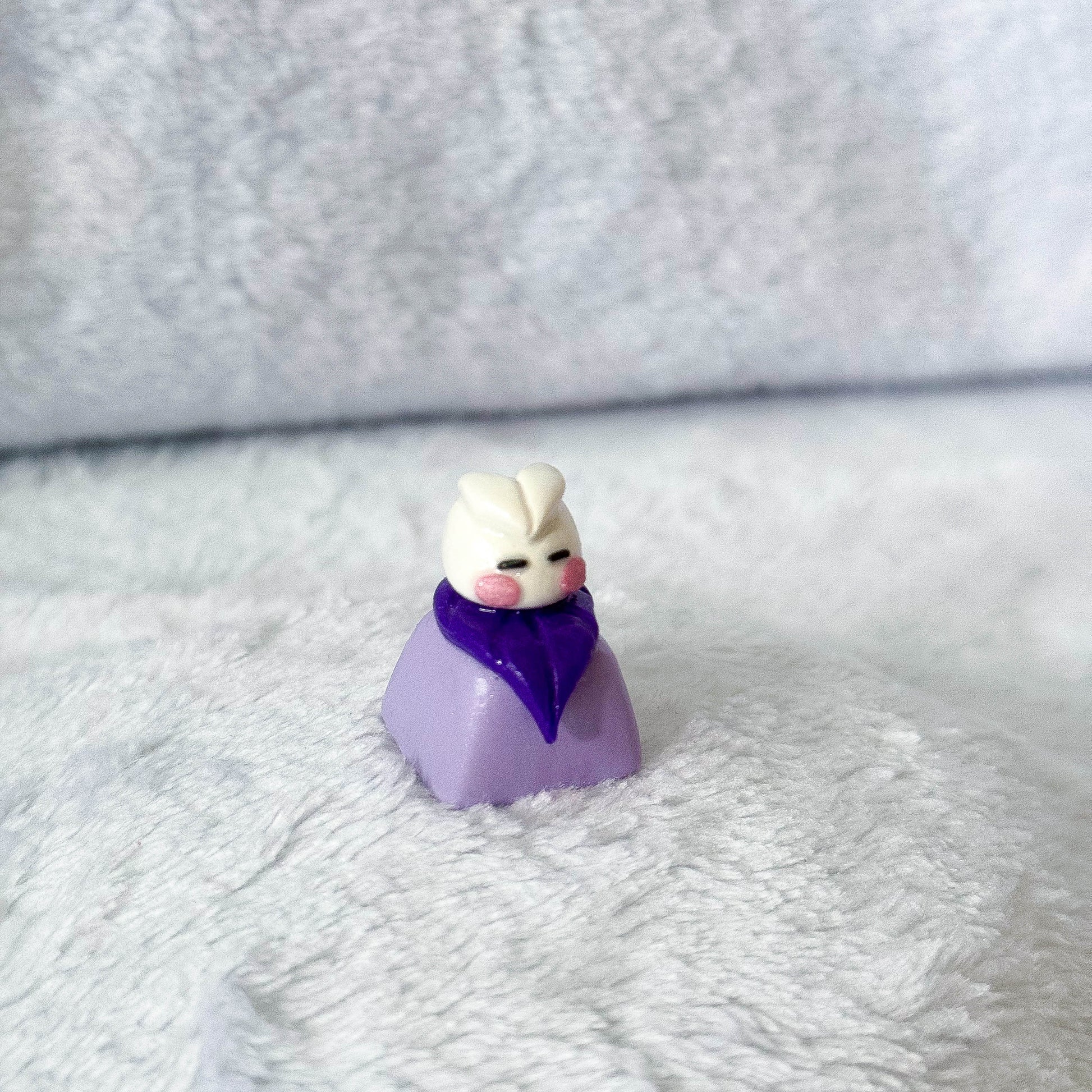 take your typing to the next level with our chonky mochi bunny artisan keycap! this unique keycap features a chonky mochi bunny design in playful shades of white sitting on top of a purple leaf and lavender base. spruce up your keyboard with this cute and quirky addition.