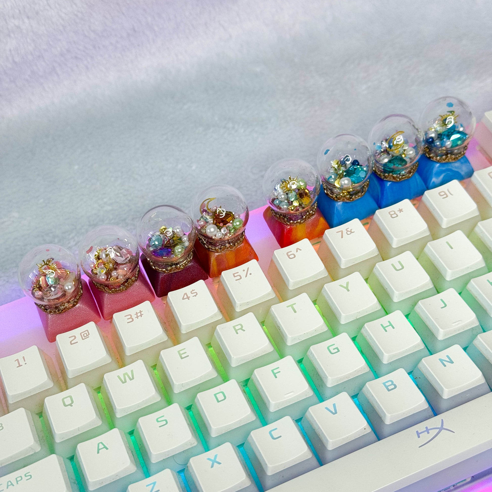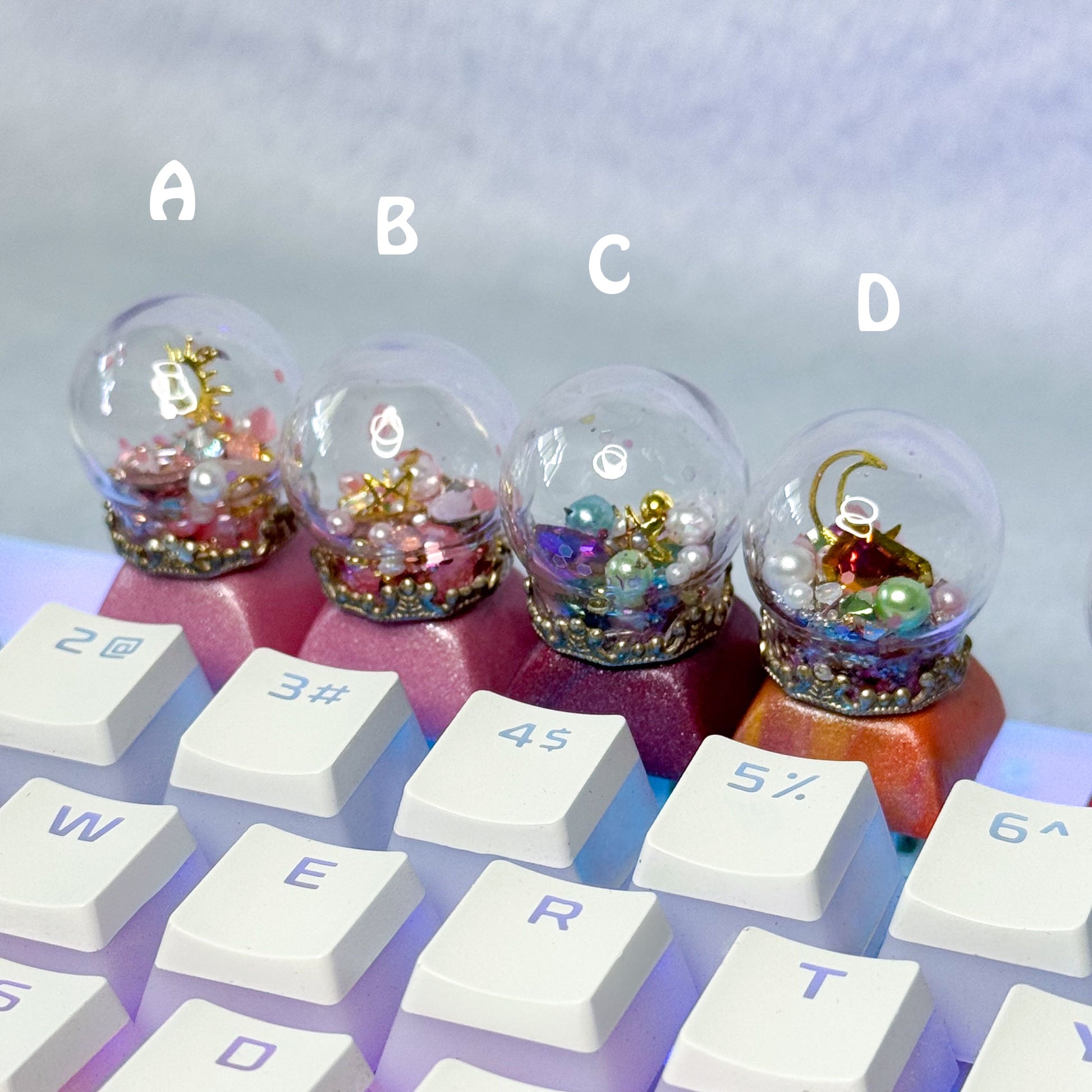 embark on a miniature magical adventure with our handmade magic globes and potions artisan keycap! this whimsical clay creation features delicate stars, moons, and colorful potion bottles, adding a touch of enchantment to your keyboard. each dainty keycap is lovingly crafted by hand, making it a unique aesthetic treasure. handle with care to preserve its magical charm!