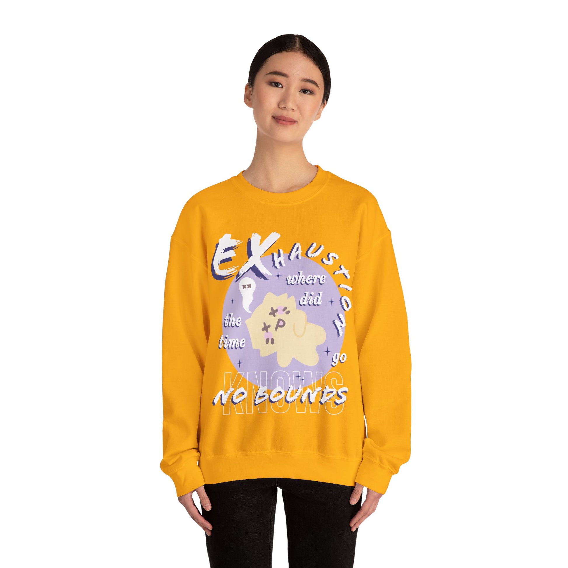 Time flies, but don't let it exhaust you! Our crewneck features a playful reminder to take breaks because exhasution knows no bounds. Stay fresh and alive with our Exhaustion crewneck.