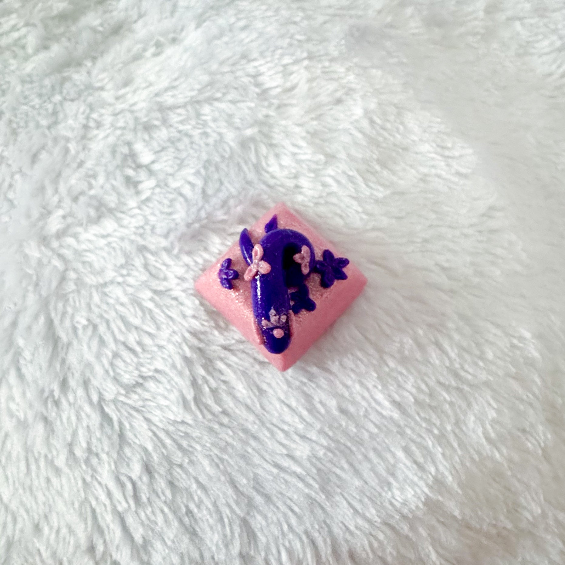 add a touch of whimsy to your keyboard with our year of the snake artisan keycap! handcrafted in pink, purple, lavender, and white, this keycap is truly one-of-a-kind. perfect for anyone looking to add a bit of playfulness to their computer setup. (limited quantities available while they slither away!) receive a free mini matching sticker sheet with a purchase of your keycap