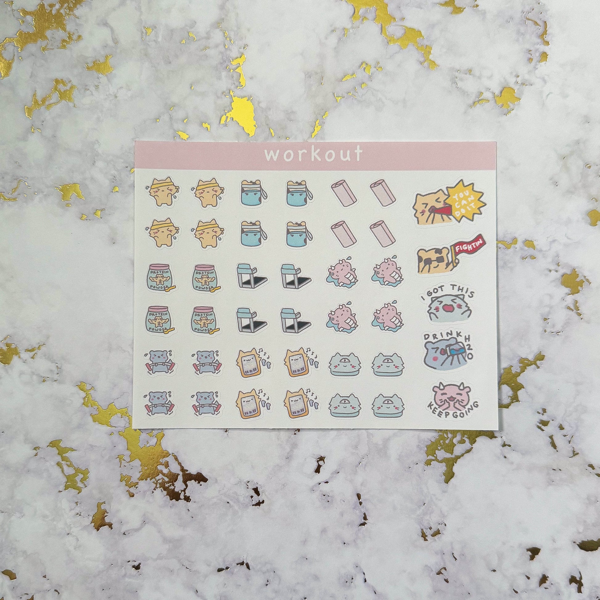get organized and motivated with our workout planner stickers! keep track of your workouts and plan your workout days ahead. with reminders to stay hydrated and a playful reminder that no pain = no gain. get ready to crush your fitness goals!